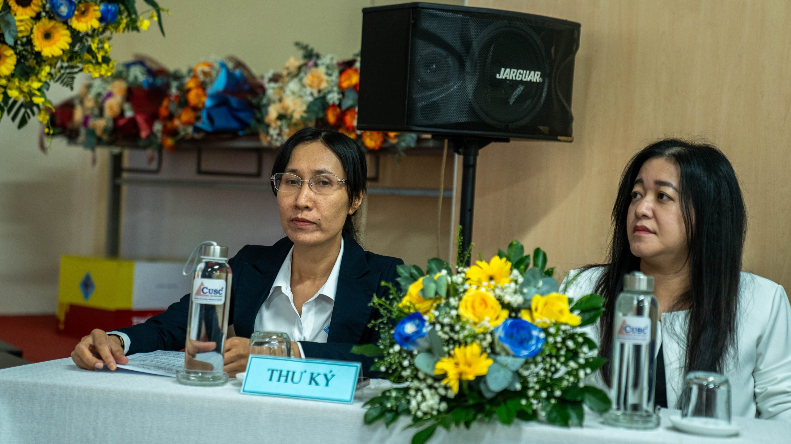 Chủ tọa Hội nghị đề cử và giới thiệu Thư ký Hội nghị để ghi biên bản của Hội nghị và chuẩn bị Nghị quyết Hội nghị. Ban Thư ký Hội nghị gồm có cô Trần Ngọc Cầm và cô Trần Thị Ngoc Liễu.